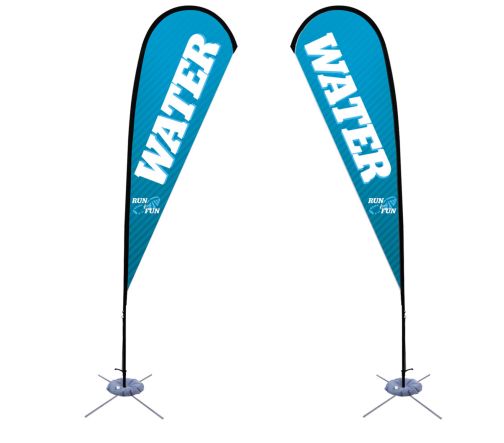 Kit Includes: Either a Spike or Cross Base, Banner Hardware and Printed Banner. Dye sublimated banner Tear Drop Sail Sign. Printed on knit flag polyester, front correct - back reverse. Available in Single and Double Sided. You suppy the print ready art file and we print it.