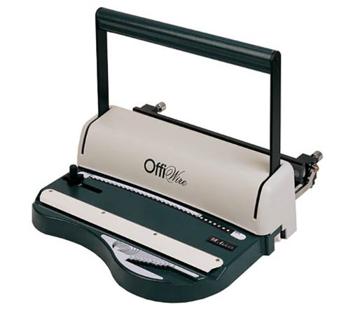 Three holes are punched per inch and then bound with double-loop wire. 3:1 offers a sturdier finish than 2:1 wire binding. Pages turn 360° and lay flat for easy copying. This easy-to-use machine is perfect for light office and home use. Punches up to 10 sheets and binds documents up to letter size. 1-year warranty.